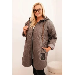 Dámská bunda Plus Size prošívaná s kapucí a nápisem HOPE cappuccino