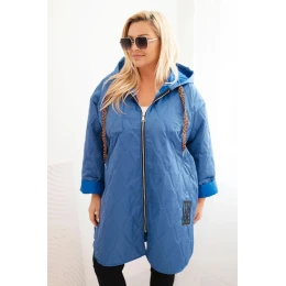 Dámská bunda Plus Size prošívaná s kapucí a nápisem HOPE jasno jeansová