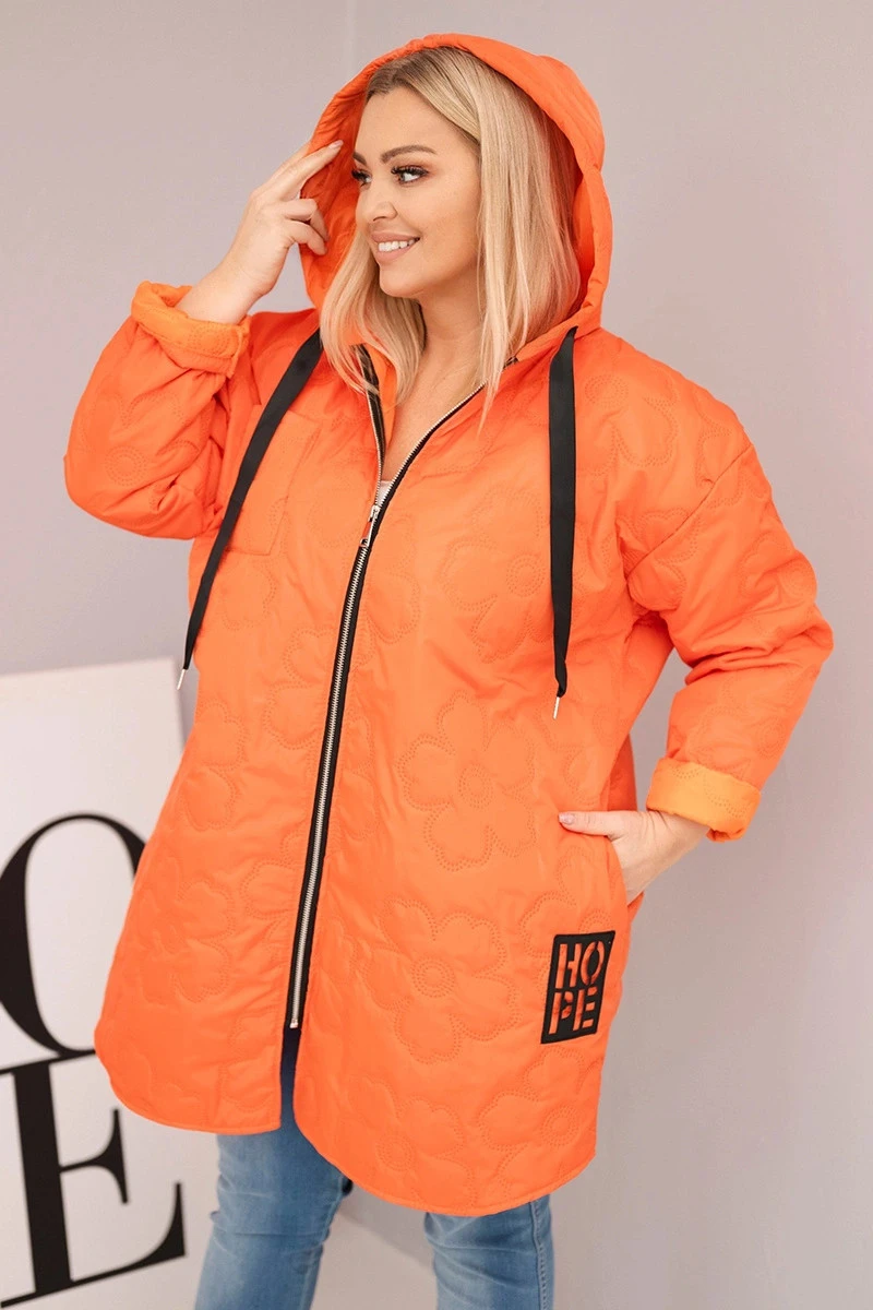 Dámská bunda Plus Size prošívaná s kapucí a nápisem HOPE oranžová