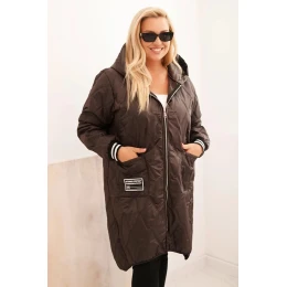 Dámská bunda Plus Size prošívaná s kapucí a sportovními manžetami hnědá