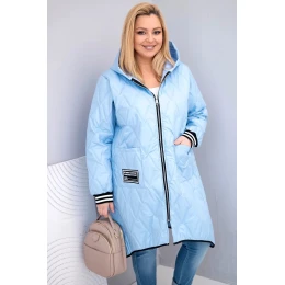 Dámská bunda Plus Size prošívaná s kapucí a sportovními manžetami modrá