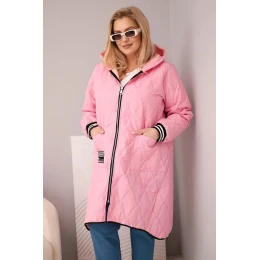Dámská bunda Plus Size prošívaná s kapucí a sportovními manžetami světle růžová