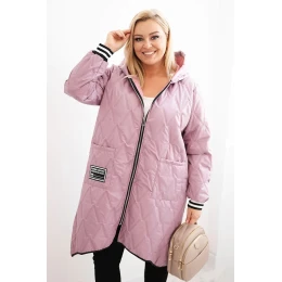 Dámská bunda Plus Size prošívaná s kapucí a sportovními manžetami tmavě růžová