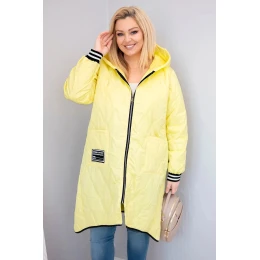Dámská bunda Plus Size prošívaná s kapucí a sportovními manžetami žlutá