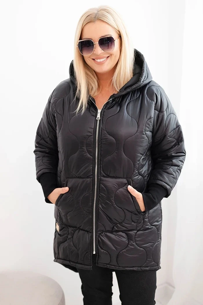 Dámská zimní bunda Plus Size prošívaná s kapucí černá