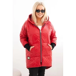 Dámská zimní bunda Plus Size prošívaná s kapucí červená