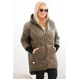 Dámská zimní bunda Plus Size prošívaná s kapucí khaki