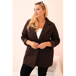 Dámská bunda Plus Size prošívaná s límcem a knoflíkem hnědá