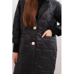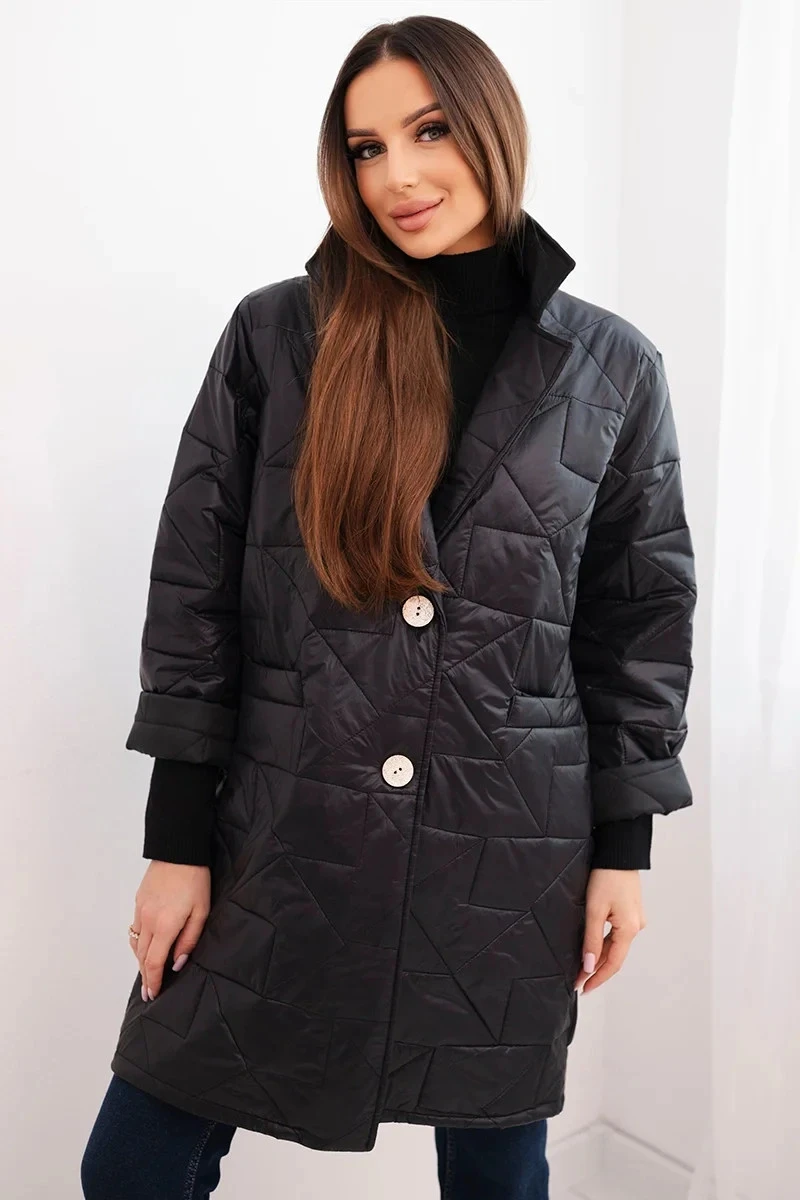 2. Dámská bunda Plus Size prošívaná s ozdobnými knoflíky a límcem černá