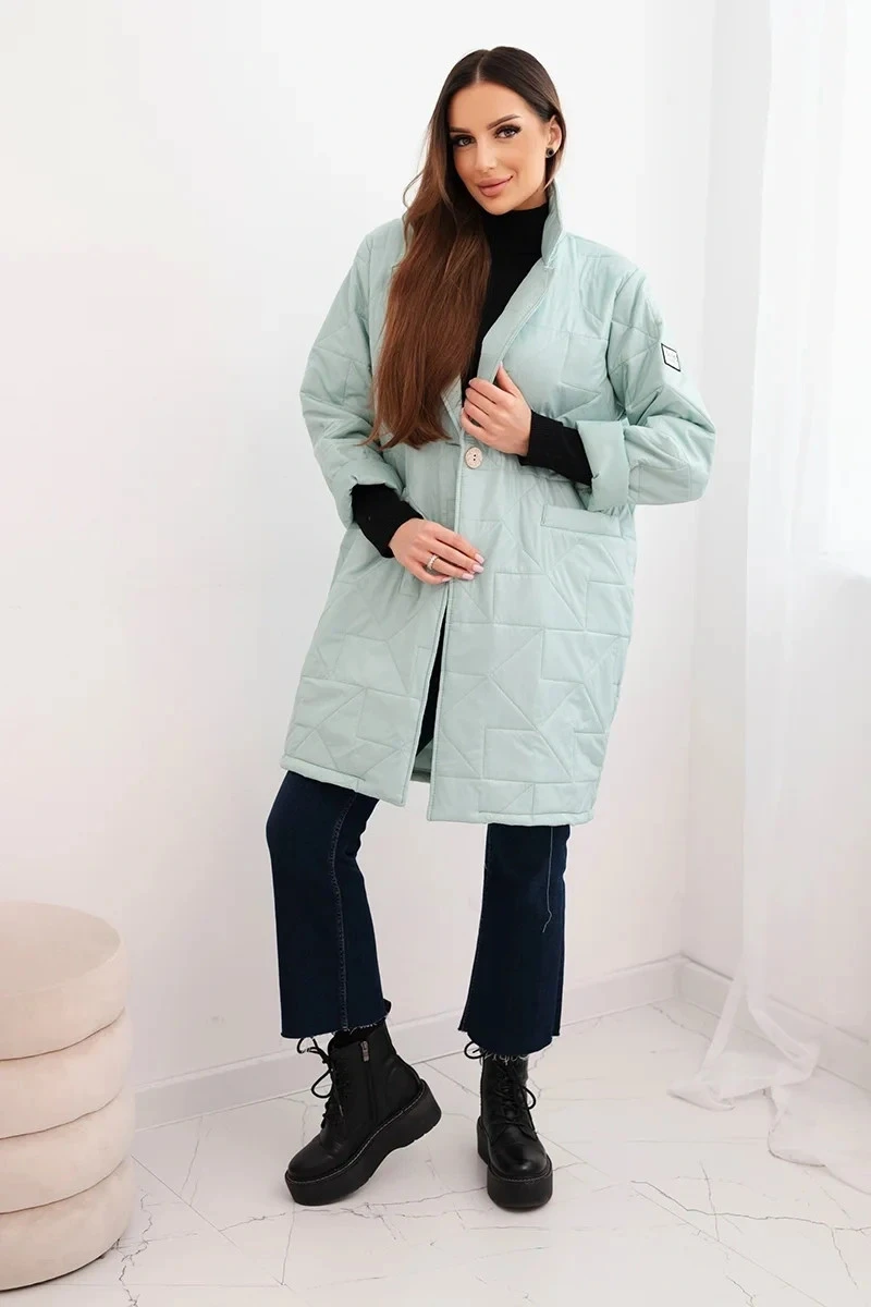 2. Dámská bunda Plus Size prošívaná s ozdobnými knoflíky a límcem jasno mentolová