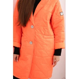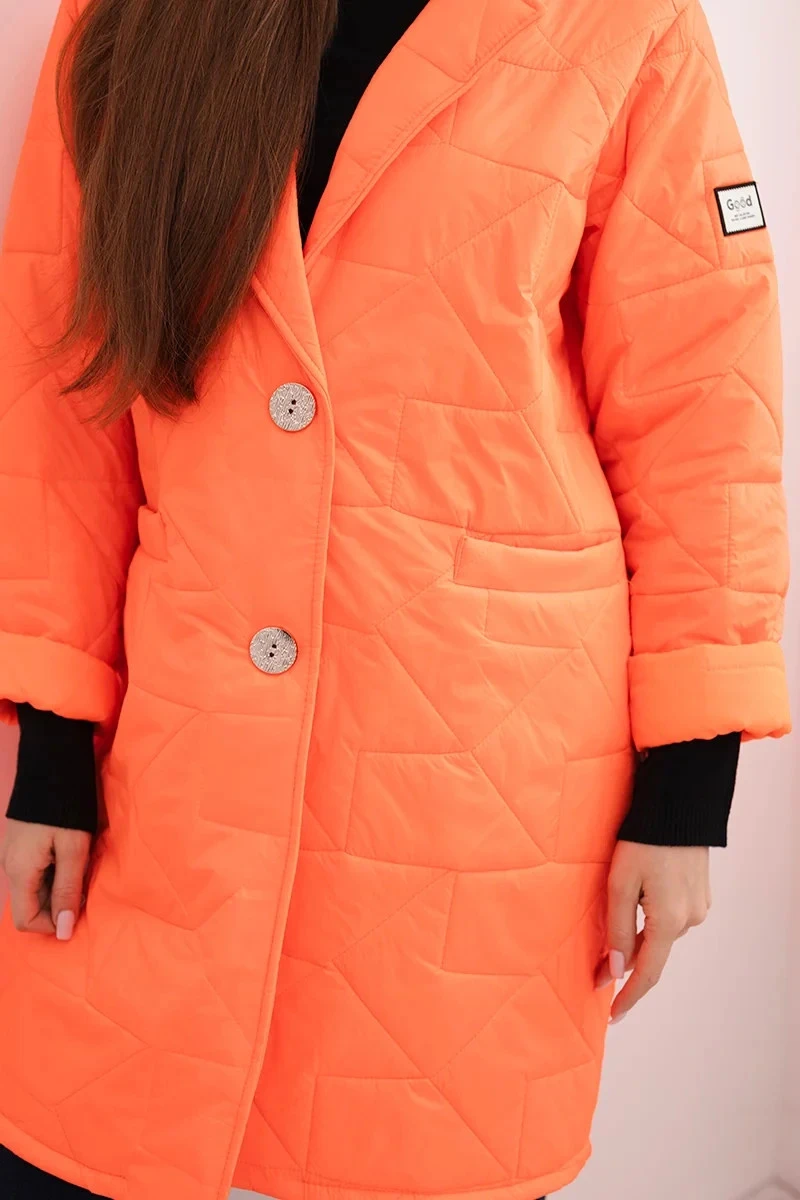 2. Dámská bunda Plus Size prošívaná s ozdobnými knoflíky a límcem neonově oranžová