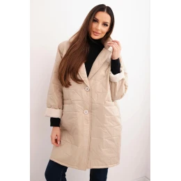 2. Dámská bunda Plus Size prošívaná s ozdobnými knoflíky a límcem tmavě béžová