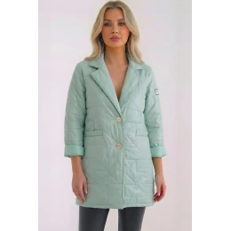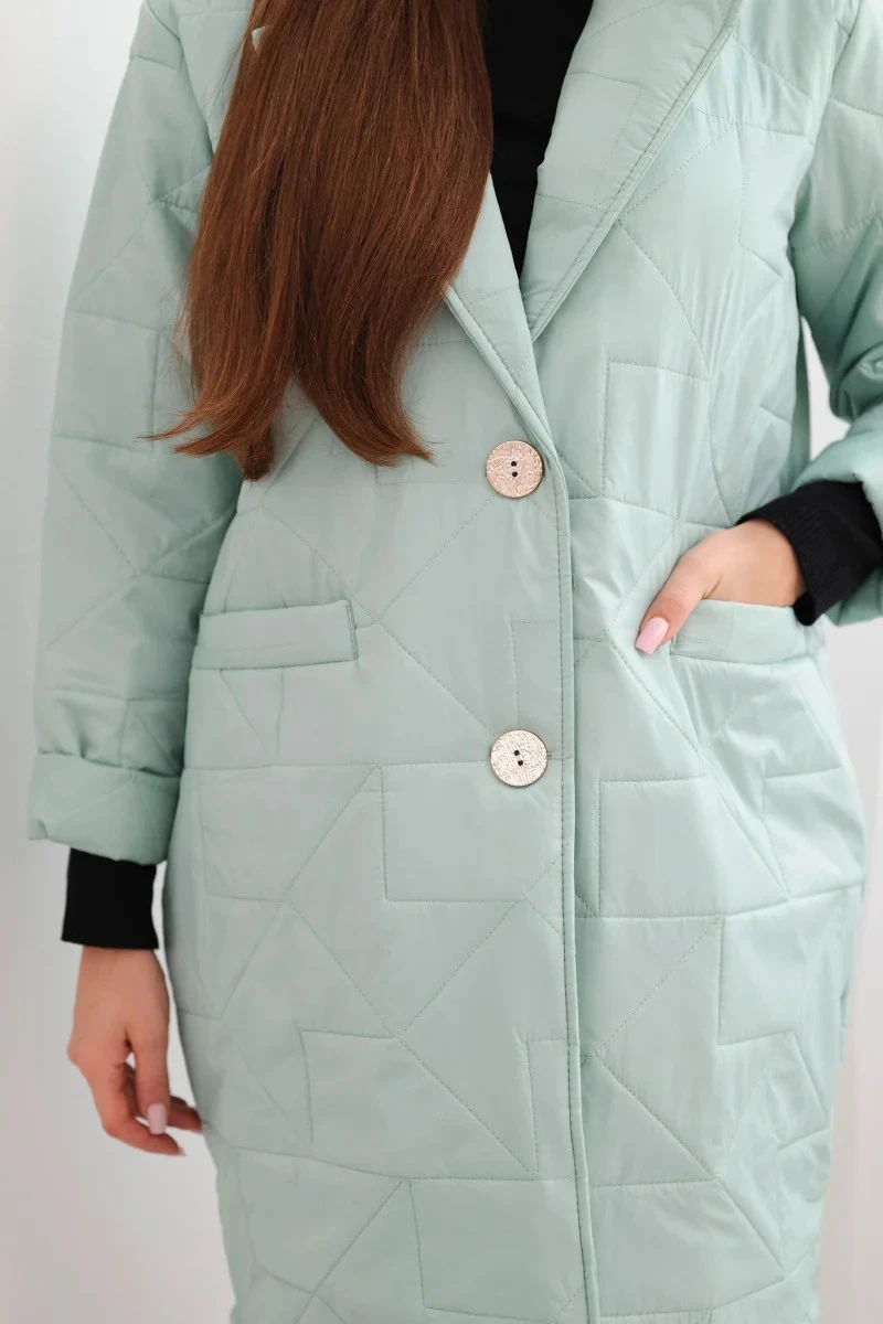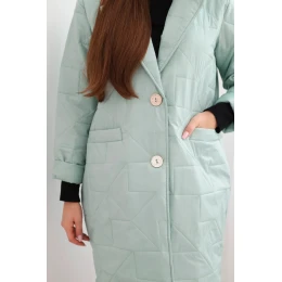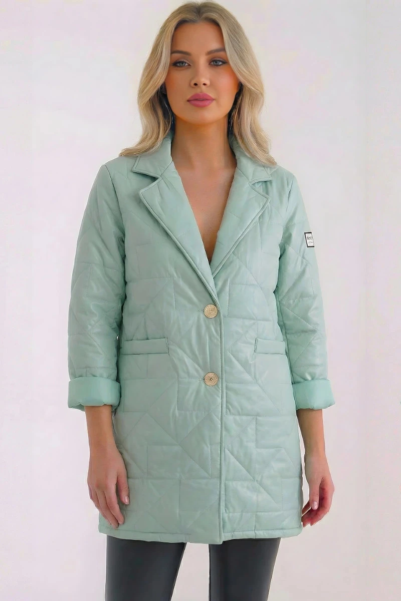 2. Dámská bunda Plus Size prošívaná s ozdobnými knoflíky a límcem tmavě mátová