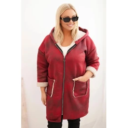 Dámská bunda Plus Size s kapucí a kapsami zateplená beránkem bordová