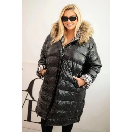 Dámská bunda Plus Size s kapucí a kožešinou černá