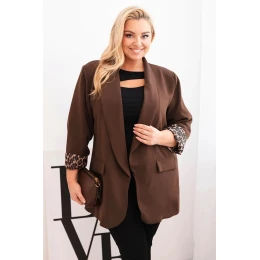 Dámská bunda Plus Size s podšívkou v leopardím vzoru hnědá