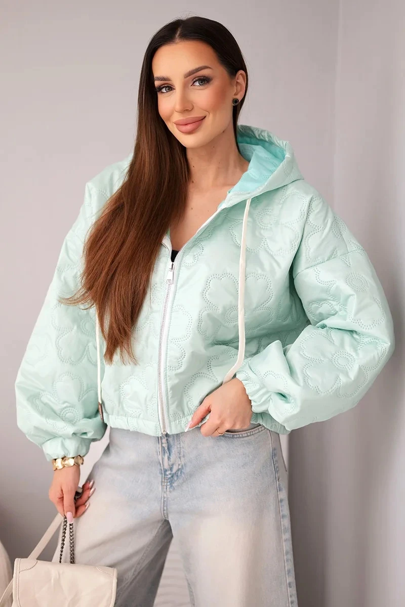 - Prošívaná dámská bunda s ozdobným ražením květin
