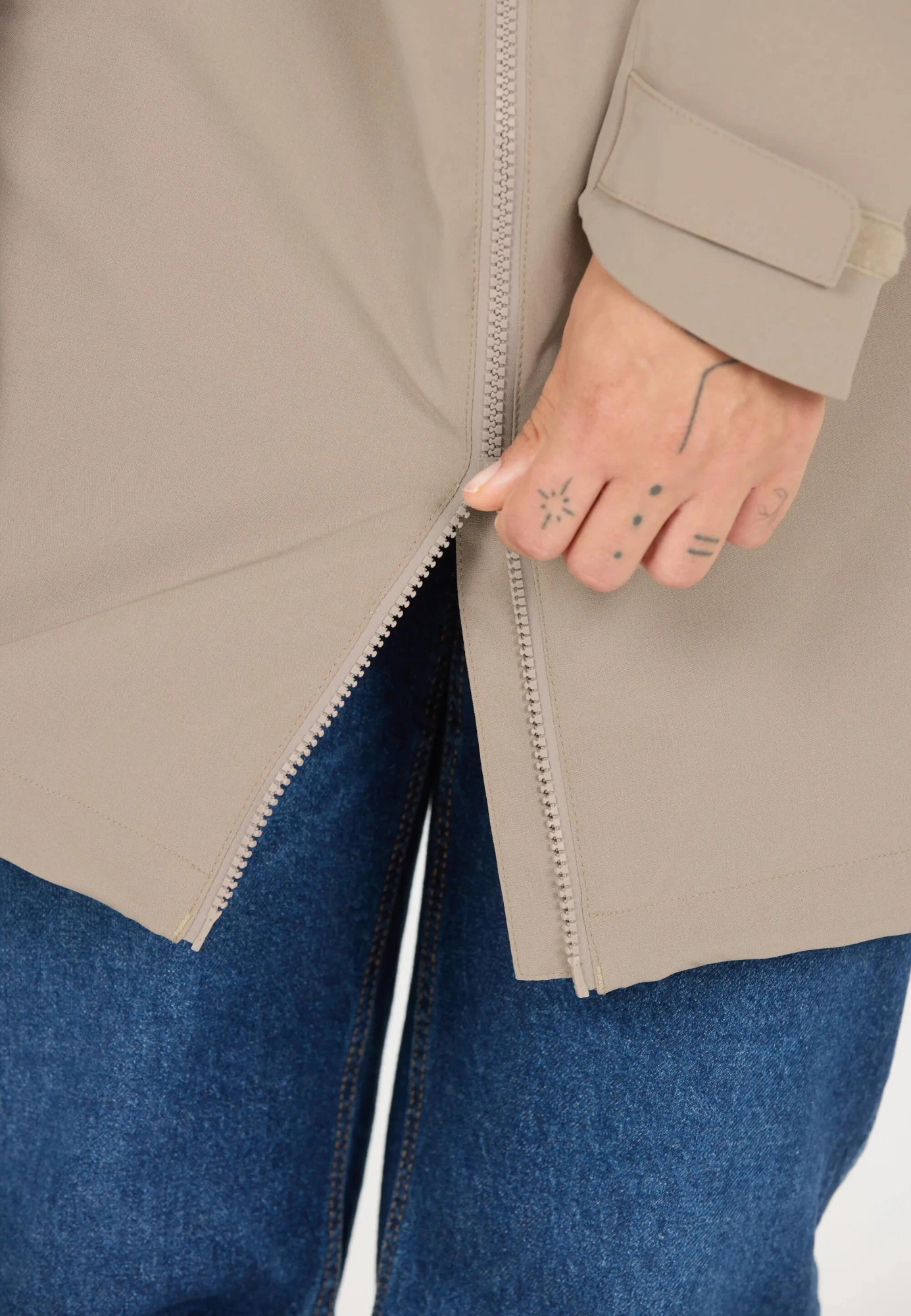 Bunda má plně nastavitelnou kapuci, celopropínací zip s ochranou proti větru a praktické kapsy na zip pro bezpečné uložení drobností.