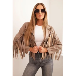 Dámská bunda z eko kůže s třásněmi ve stylu boho fango