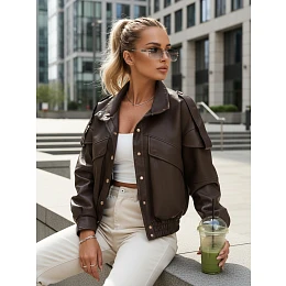 Tato dámská bunda kratšího střihu kombinuje moderní linie s pohodlím při každodenním nošení. Minimalistický design podtrhuje městský charakter stylizace, zatímco vysoký límec jí dodává osobitý vzhled. Model dobře sedí na siluetě a dobře se hodí k mnoha každodenním outfitům. Bunda byla vyrobena z ekokůže.