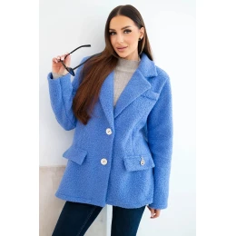 Dámská bunda z měkkého beránka s džínovým límcem modrá