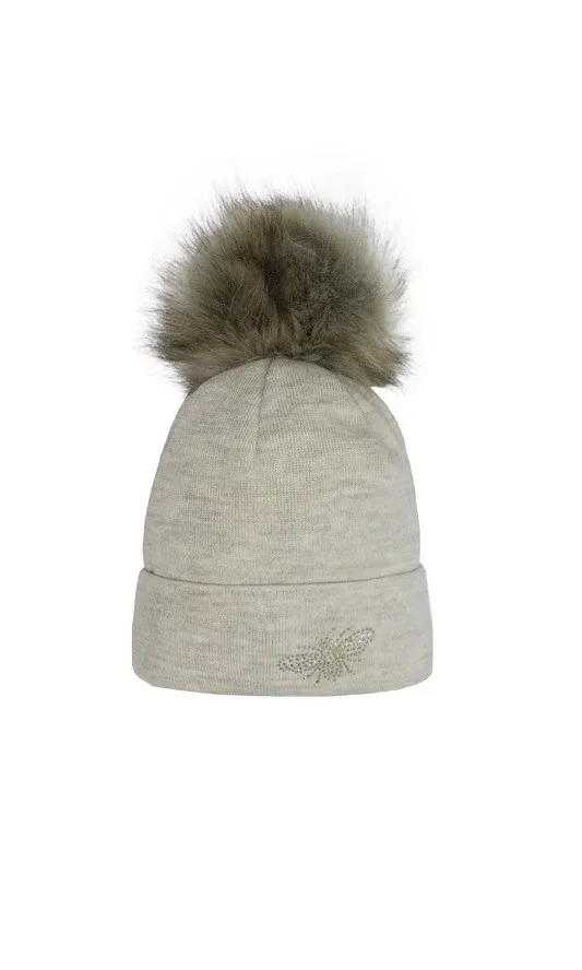 Lem čepice je ozdobený bižuterním prvkem. Dostupné barvy, které jsou vybírány náhodně: černá, šedá, světle béžová, tmavě béžová, bordó.