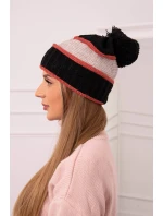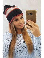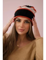 Dámská čepice Kinga K297 černá+tmavě růžová+béžová