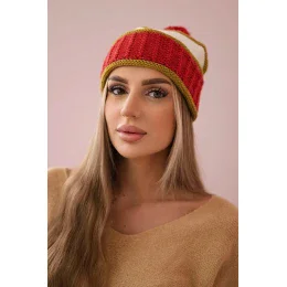Dámská čepice Kinga K297 rudá+světlá khaki+ecru