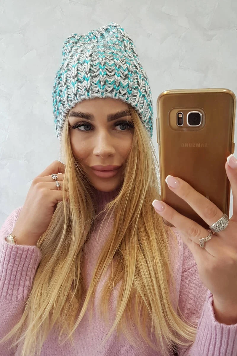 Dámská čepice Lora K312 tyrkysová+šedá