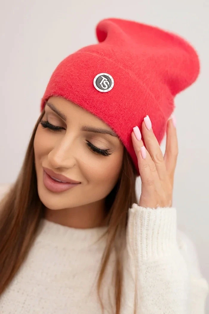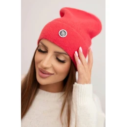 Dámská měkká čepice z alpaky s ozdobnou plaketou malinová