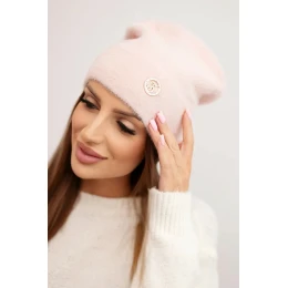 Dámská měkká čepice z alpaky s ozdobnou destičkou pudrově růžová