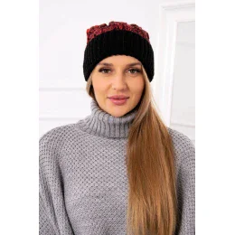 Dámská čepice s bambulí Abigail K326 black+malmine