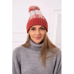 Dámská čepice s bambulí Abigail K326 červená+béžová