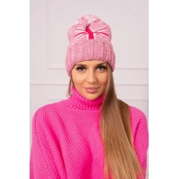 Dámská čepice s bambulí Elizabeth K386 tmavě růžová