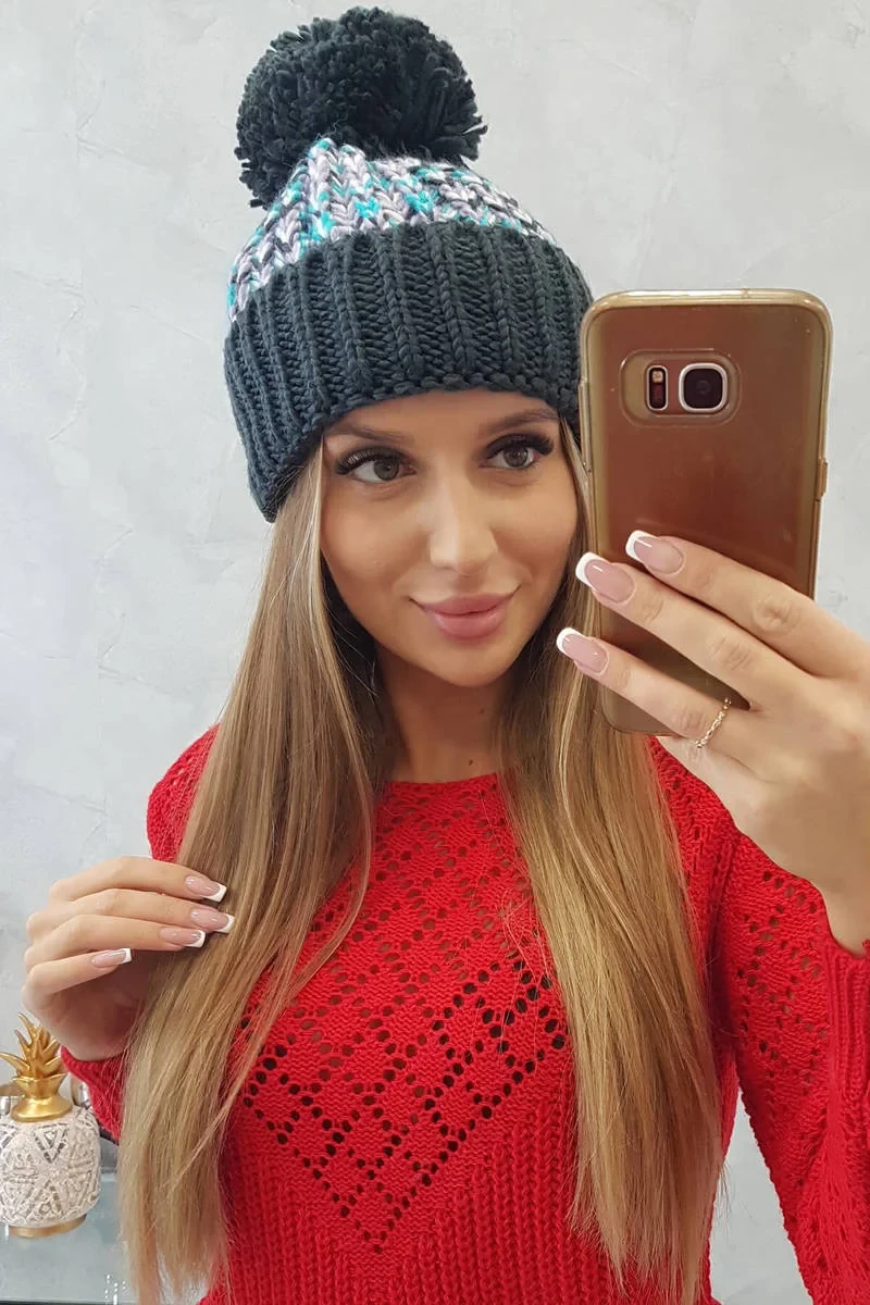 Dámská čepice s bambulí Ellen K325 graphite