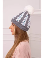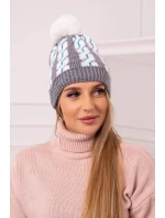 Dámská čepice s bambulí Rozalia K323 bílá+šedá