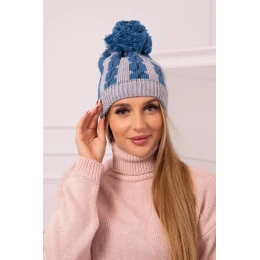 Dámská čepice s bambulí Rozalia K323 denim+grey