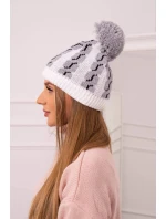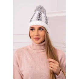 Dámská čepice s bambulí Rozalia K323 šedá+bílá