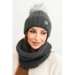 Dámský zimní komplet s bambulí a nákrčníkem grafitový