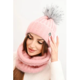 Dámská zimní souprava s bambulí a šálou pudrově růžová