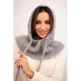 Dámská čepice s kapucí a pleteným vzorem šedá