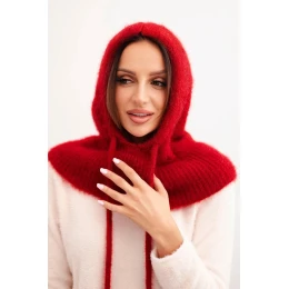 Dámská čepice s kapucí, šněrováním a copánkovým vzorem červená