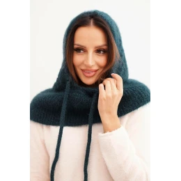 Dámská čepice s kapucí, šněrováním a copánkovým vzorem mořská