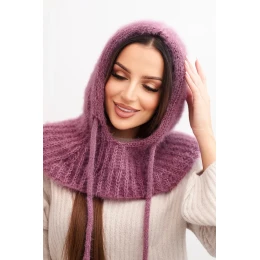 Dámská čepice s kapucí z jemným vzorem se šňůrkami fialový