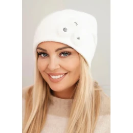 Dámská čepice s ozdobnými chlupatými květy elegantní bílá
