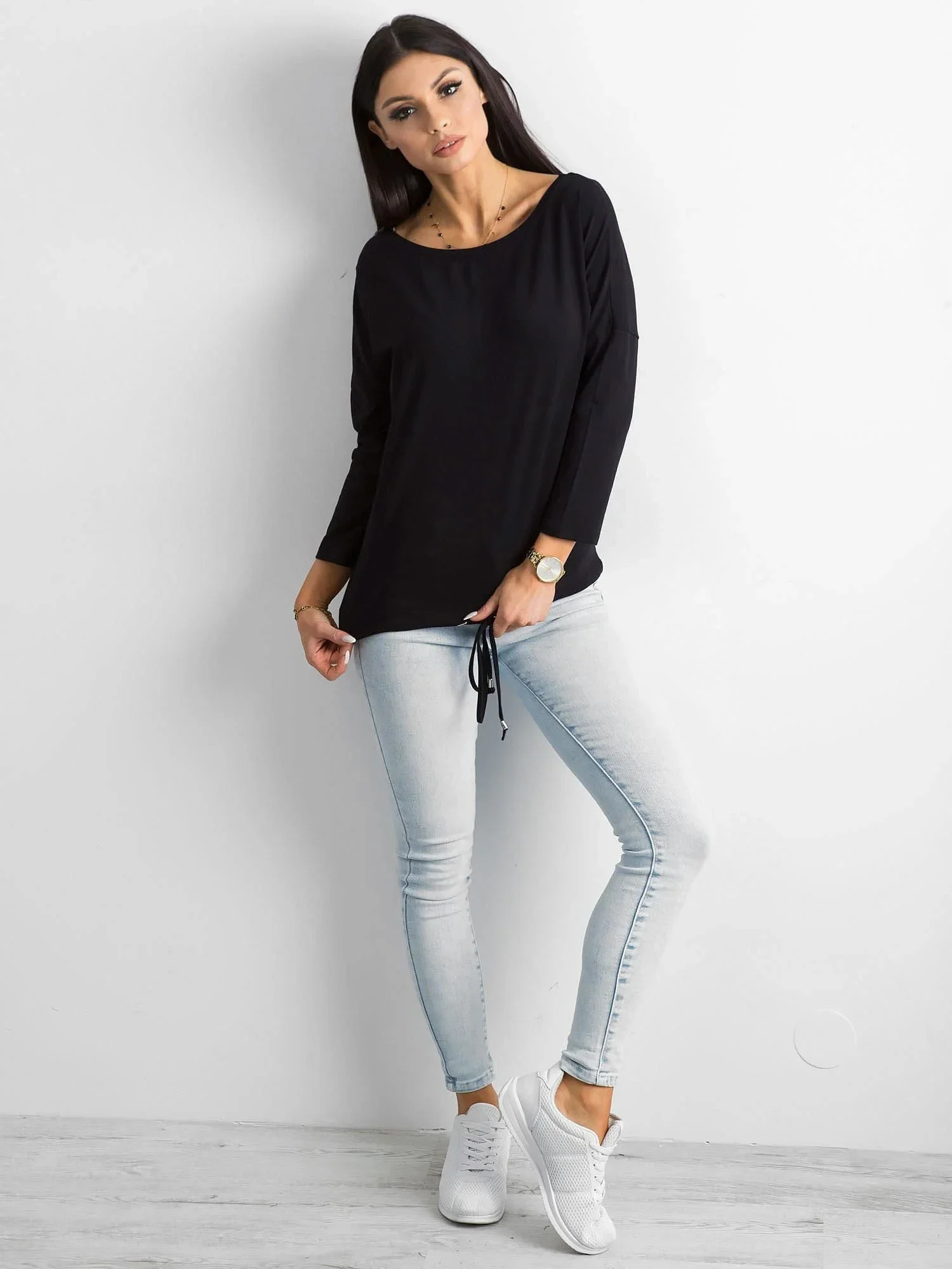 Czarna bluzka bawełniana to bez dyskusji podstawowy element garderoby każdej kobiety ceniącej najnowsze trendy oraz minimalistyczny sposób ubierania się. Jest więc absolutnym must have'em, który powinna mieć w szafie każda z Was. Prezentowany model z serii Fiona oprócz kobiecego dekoltu posiada również modne rękawy 3/4 oraz subtelny ściągacz na dole zakończony dwoma troczkami. Takie pozornie nieistotne detale pięknie podkręcają wygląd bluzki basic, nie odbierając jej jednocześnie minimalistycznego charakteru. Ponadto ta czarna bluzka basic ma również trochę luźniejszy fason, który wygodnie układa się na sylwetce, tuszuje mniejsze mankamenty figury oraz jest bardzo komfortowy w noszeniu. Taki design czyni z niej najlepszy wybór na co dzień, ponieważ gwarantuje uniwersalność i idealne dopasowanie do wszystkich pozostałych elementów garderoby. Jeśli potrzebujesz innych kolorów bluzki basic z tego modelu, to przejrzyj całą gamę dostępnych odcieni i wybierz już teraz swoj