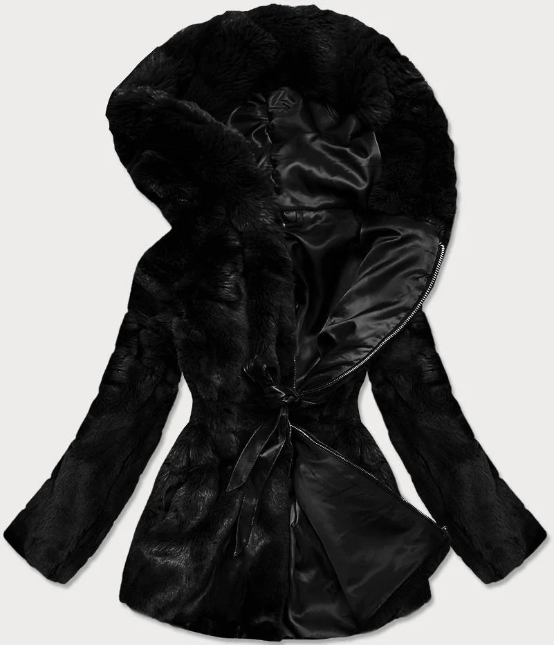 Dámská černá bunda - kožíšek s kapucí (BR9743-1)