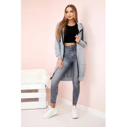 Dámská delší mikina s kapucí a zipem šedý