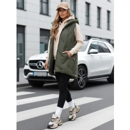 Dámská dlouhá prošívaná vesta s kapucí zelená FashionStreet TY5106