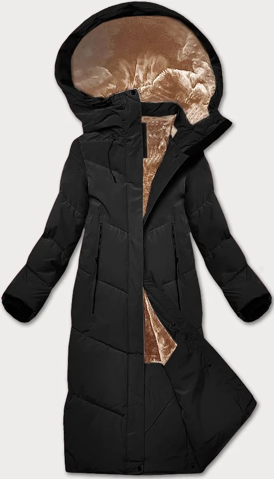Dámská dlouhá zimní bunda s umělou kožešinou LHD černá (LHD-24571)